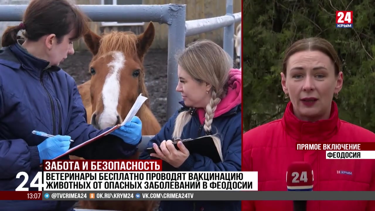 К вакцинации лошадей приступили ветеринары в Феодосии. Работают на фермах, где большое поголовье животных, и частных хозяйствах. Распространение каких заболеваний предотвращает прививка? С нами на прямую связь выходит Елена Беклишева.