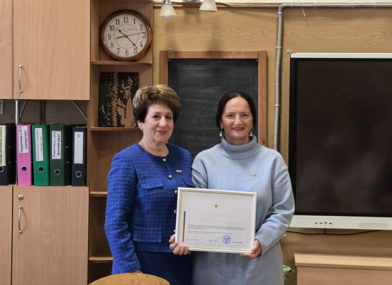 Сегодня поздравила коллектив учебного заведения во главе с директором Анжеллой Мартуниевной Евгущенко. Вручила педагогам Благодарность Председателя СФ Валентины Ивановны Матвиенко за заслуги в развитии образования и эффективную организацию учебного процесса. Преподнесла школе в дар книги, в том числе, уникальное издание «Есенинская энциклопедия». Это фундаментальное исследование жизни и творчества поэта, его роли в истории русской и мировой культуры.