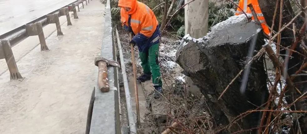 Бригады «Севавтодора» расчищают ливневую и лотки с водоприемниками от листвы и грунта