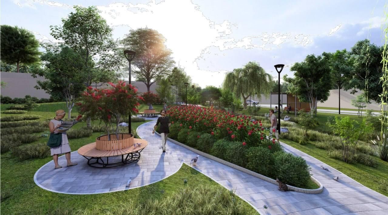 По его словам, площадь благоустройства составит более 25,7 тысяч "квадратов". Проект включает обустройство асфальтового проезда, плиточного мощения, установку скамеек и урн, устройство детской и спортивной площадок, систем наружного освещения и видеонаблюдения.