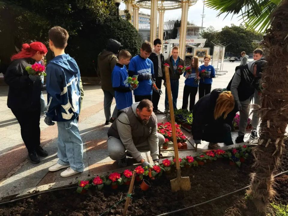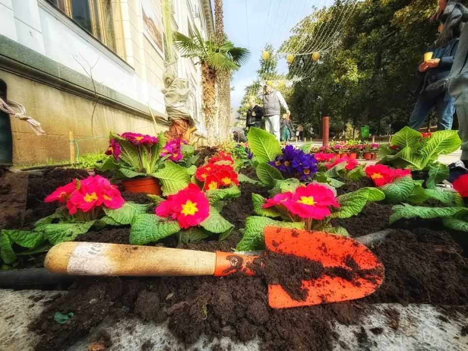 В сквере у памятника Ленину уже появилась тысяча ярких примул: розовые, синие, красные и фиолетовые. Работали вместе с молодогвардейцами, Молодежным советом, руководством футбольного клуба «Рубин Ялта» и другими активными ялтинцами. На совесть, как настоящие пчёлки, продумали всё до мелочей Чтобы примулы не болели и долго радовали нас ярким цветом. Благодаря системе капельного полива, которая установлена на клумбах, в нашем солнечном климате растениям будет комфортно