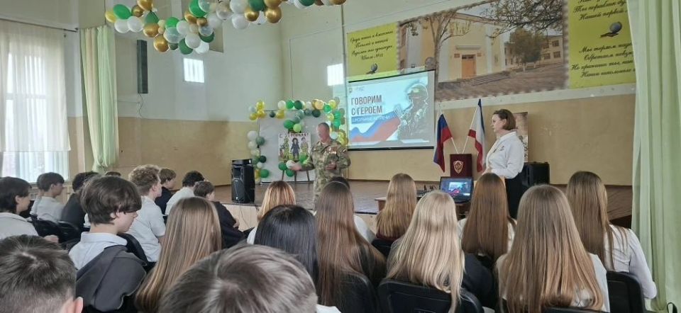 В МБОУ «СОШ №12 им. И. П. Крыжановского» прошла встреча старшеклассников с участником СВО, заместителем командира взвода мотострелкового батальона 126 отдельной бригады береговой обороны — позывной «Скиф».