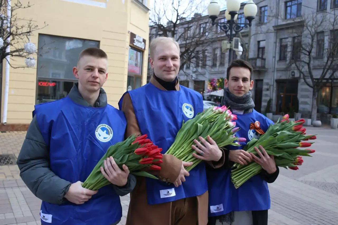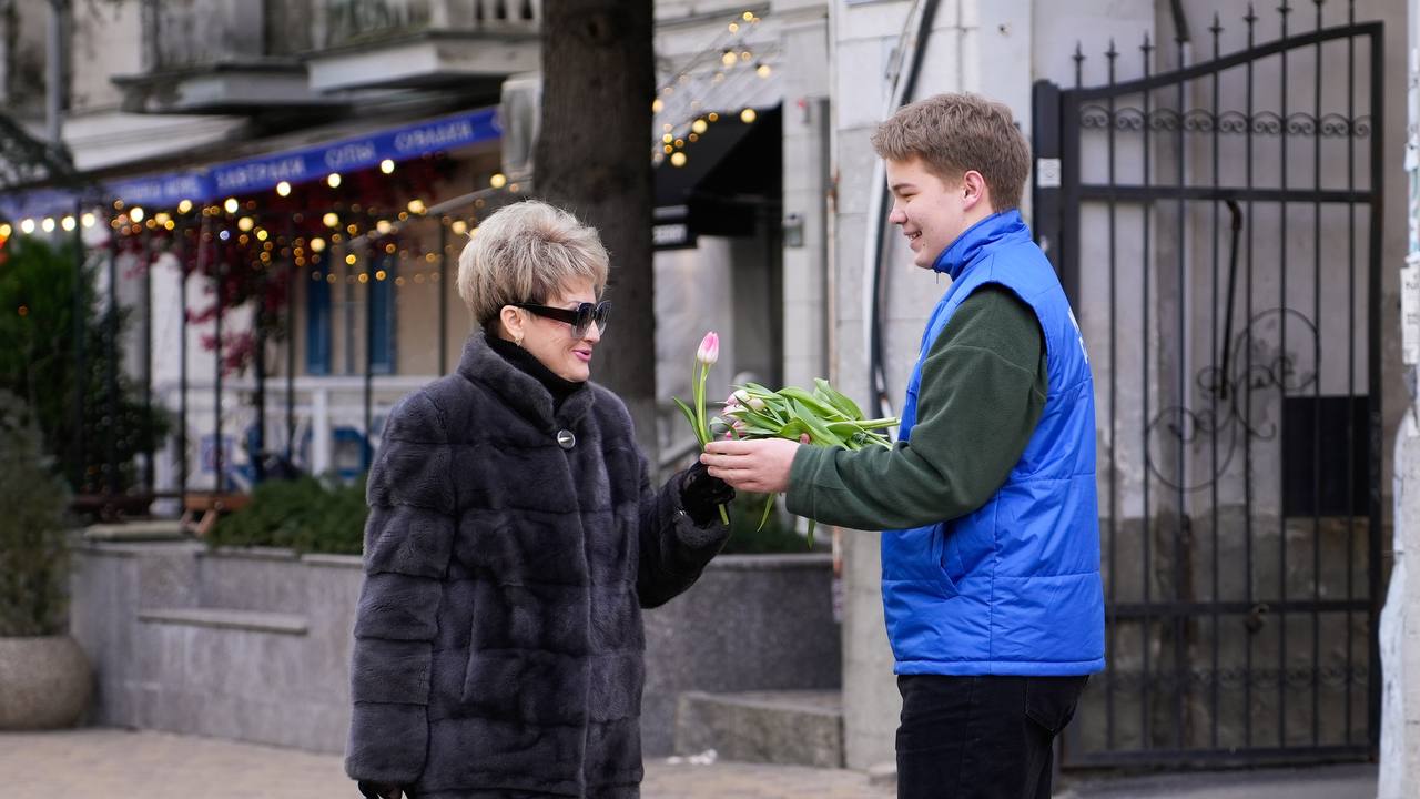 Сегодня парни из различных молодежных движений вышли на улицы своих городов и населенных пунктов, чтобы выразить теплые чувства и подарить девушкам цветы.