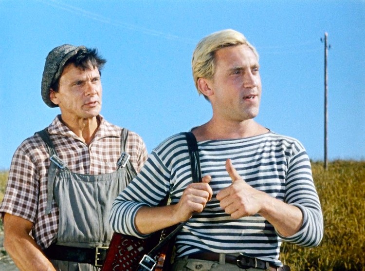 В комедии «Стряпуха» Юматов (слева) сыграл бригадира, а Высоцкий - комбайнера-гармониста. Фото: Кадр из фильма