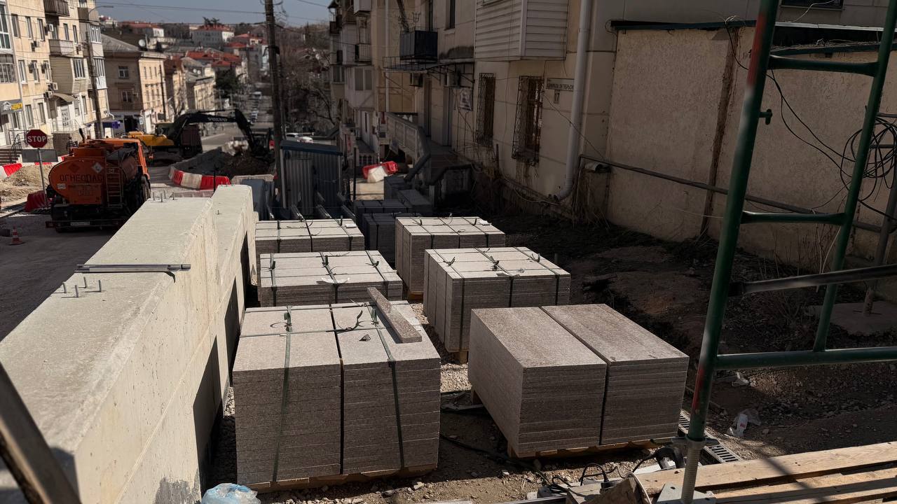 Подрядчик приступил к облицовке верхних фасадов подпорных стен гранитными плитами. На эти работы уйдет 2800 квадратных материалов — цвет камня ранее утвердил архитектурно-художественный совет.