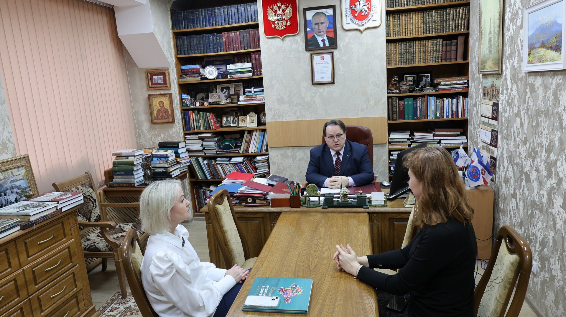 Во встречи приняли участие заместитель председателя Павле Розанов, директор Государственного архив Республики Крым новейшей истории и по личному составу.