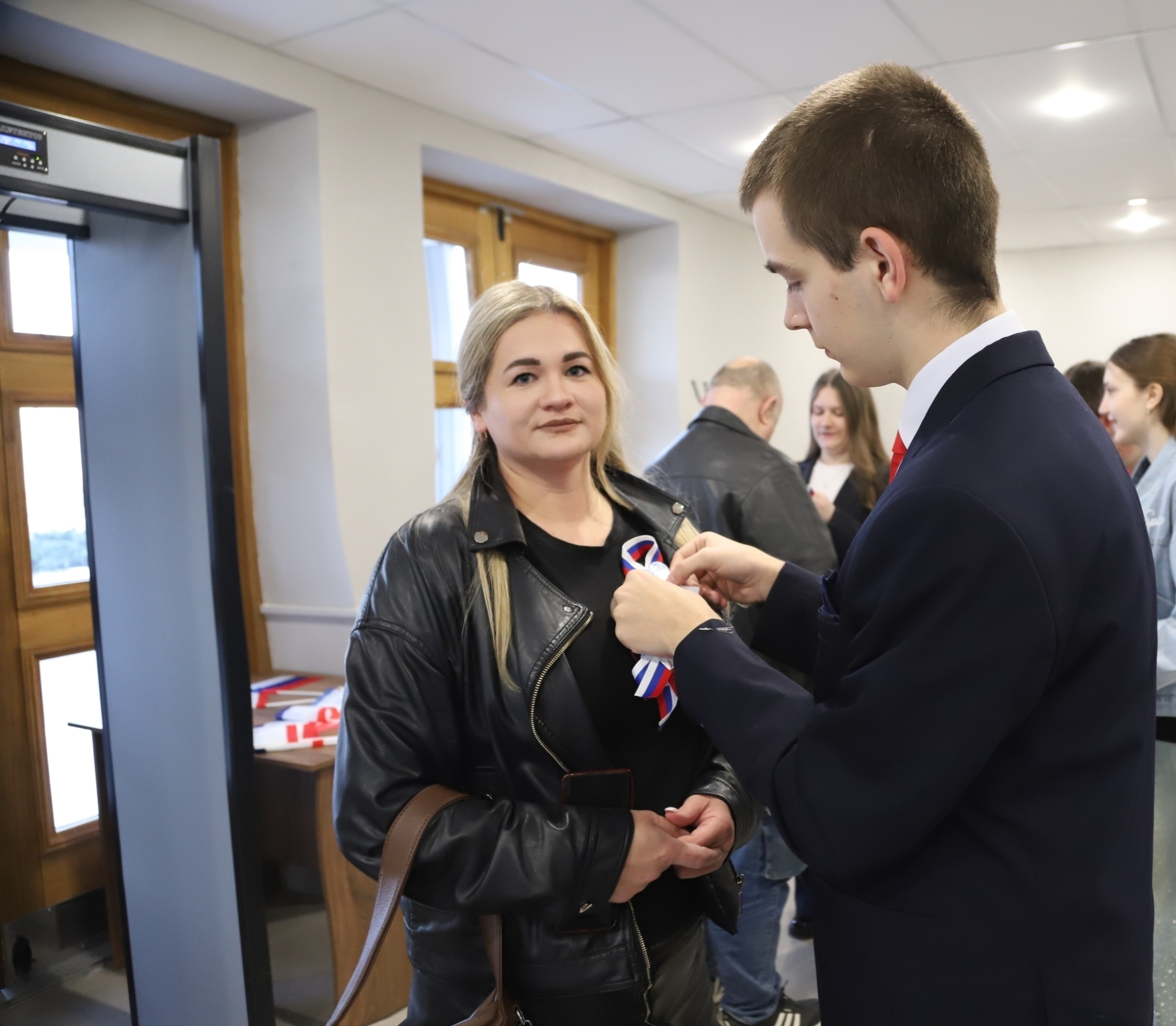 С самого утра волонтеры встречали сотрудников, вручая им символические праздничные ленточки и поздравляя с наступающим событием. Это простое, но важное действие помогло создать атмосферу единства и патриотизма в рабочем коллективе, напоминая о значимости исторического момента.