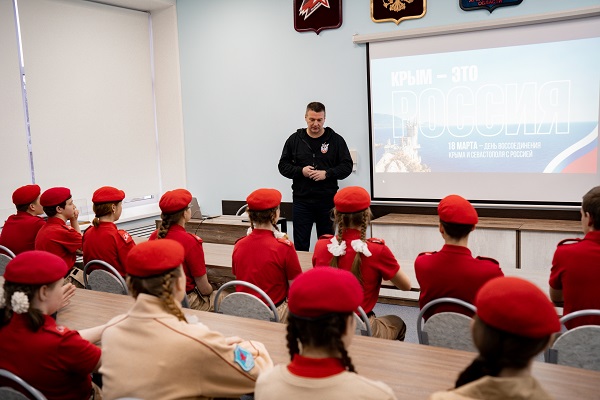 Ветеран УФСИН России по Архангельской области рассказал юнармейцам о Дне воссоединения Крыма с Россией