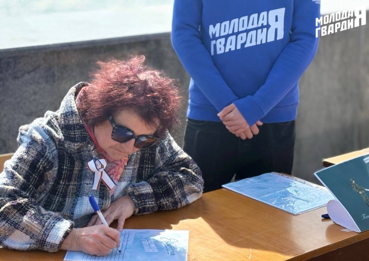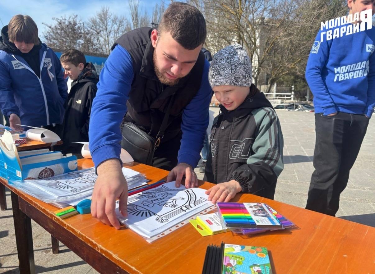 Молодогвардейцы приняли участие в праздничных мероприятиях, посвящённых Дню воссоединения Крыма с Россией, поздравив жителей и гостей города.
