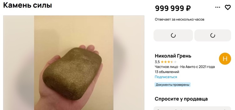 За чудо-камень крымчанин просит без малого 50 тысяч рублей. А тем, кто оценил шутку, предлагает просмотреть его более серьезные объявления.