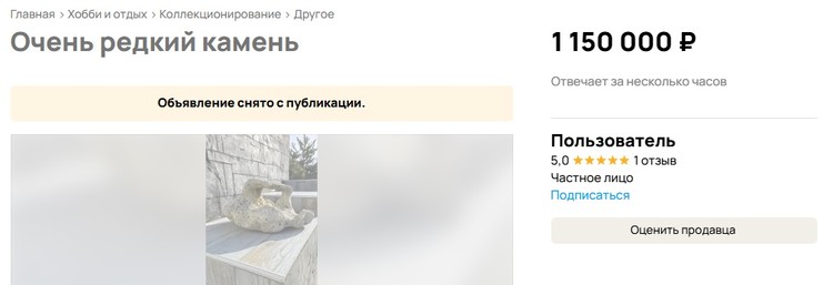 За известняк необычной формы продавец просил 1,15 миллиона. Фото: сайт объявлений
