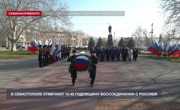 Празднование двенадцатой годовщины Русской весны в нашем городе началось с возложения венков и цветов к Мемориалу героической обороны Севастополя 1941 - 1942 гг. В числе собравшихся – первые лица города, представители духовенства, ветеранских и общественных организаций, военнослужащие и молодёжь.