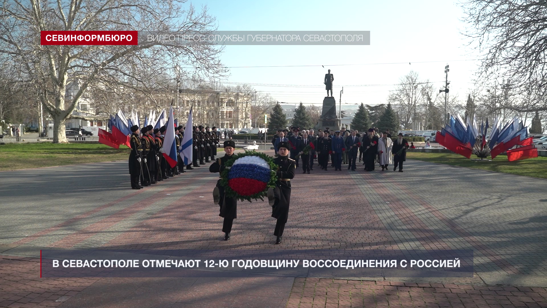 МИХАИЛ РАЗВОЖАЕВ, губернатор Севастополя: «То, что произошло 12 лет назад – историческое событие, определившее современную историю нашей страны. Началась эта история здесь, в Севастополе. Мы уже говорили об этом – 23 февраля. Сегодня исторический день, когда президент подписал без преувеличения исторический Указ о создании двух новых субъектов – Республики Крым и города федерального значения Севастополя в состав Российской Федерации. Поэтому от всех от всей души поздравляю всех севастопольцев, всех крымчан с Днём Русской весны».