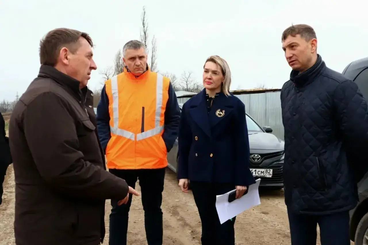 Председатель Совета министров Республики Крым Юрий Гоцанюк совместно с главой администрации Джанкойского района Инной Федоренко осуществили выезд на объект строительства путепровода через железную дорогу, расположенного на автомобильной дороге в направлении села Маслово.