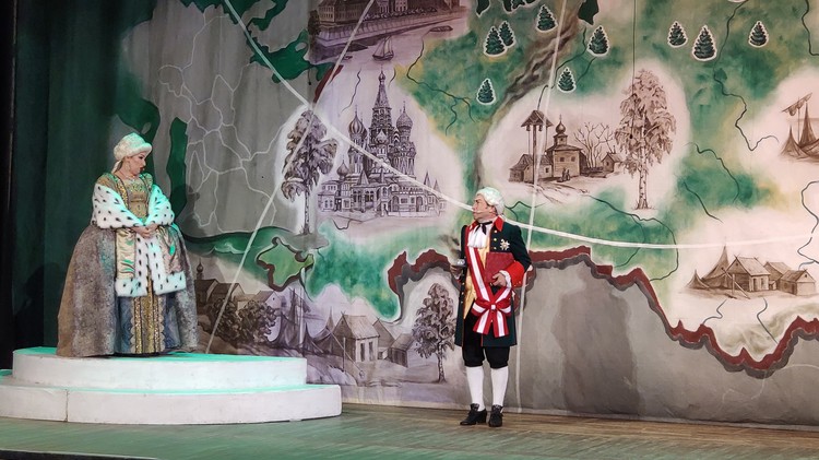 - Муму с собой возьмем, не топить же! - звучит со сцены, когда главные герои начинают планировать побег от немилости императрицы.