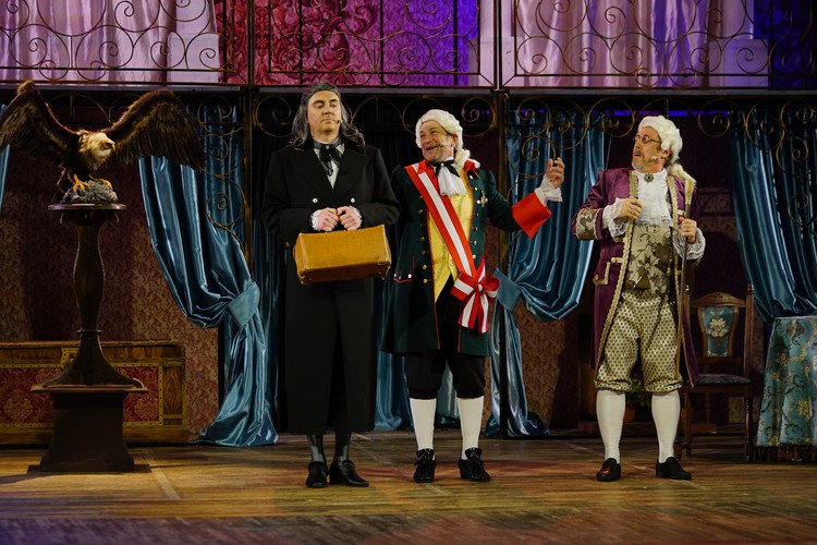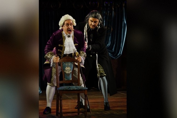 Труппе крымского театра удалось создать на сцене атмосферу галантного и непредсказуемого XVIII века и рассказать невероятную историю, приключившуюся с банкиром Клостерманом при дворе императрицы Екатерины Великой.