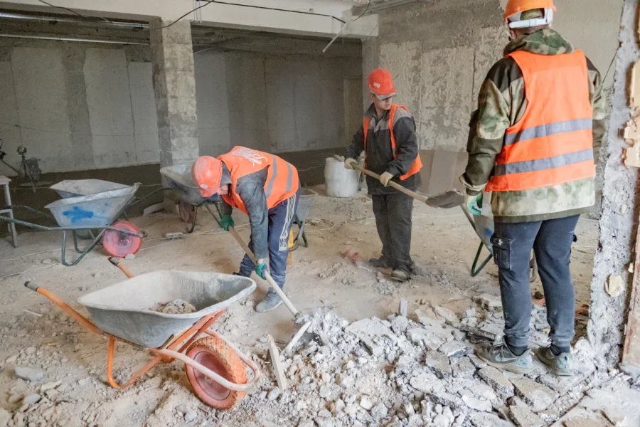 На данный момент демонтажные работы уже выполнены, специалисты начали прокладку инженерных сетей и заготовку материалов для отделки. В школе будет установлена система кондиционирования, а окна защитит бронепленка. Особое внимание уделили дизайну: проект согласовывался с родителями. Для начальных классов выбрали пастельные оттенки, а для средней школы — более яркие.