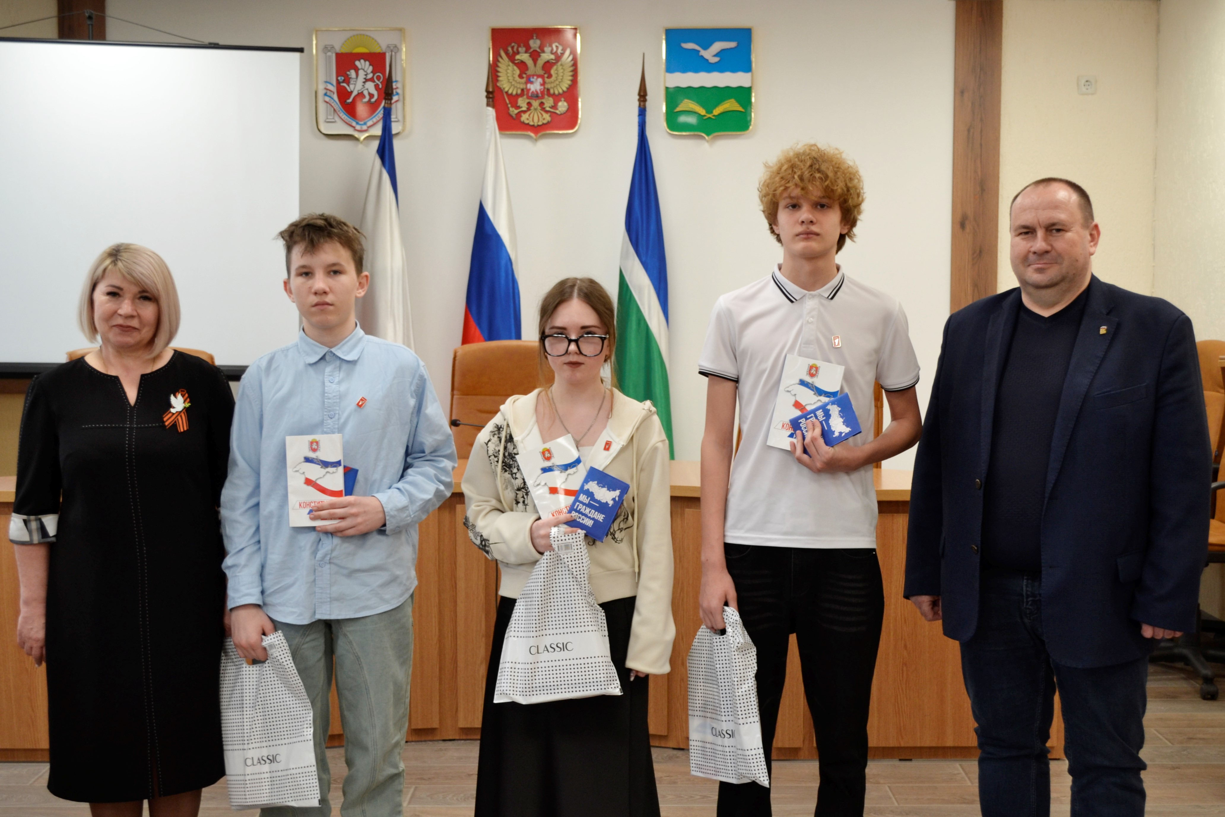 В Администрации Первомайского района состоялось торжественное вручение паспортов Российской Федерации в честь празднования Дня Конституции Республики Крым. Важный документ юным первомайцам вручили глава муниципального образования Елена Стельмах и глава Администрации Первомайского района Александр Соколовский. Они пожелали молодым гражданам успехов в учебе, раскрытия всех их талантов и активного вклада в будущее Первомайского района.