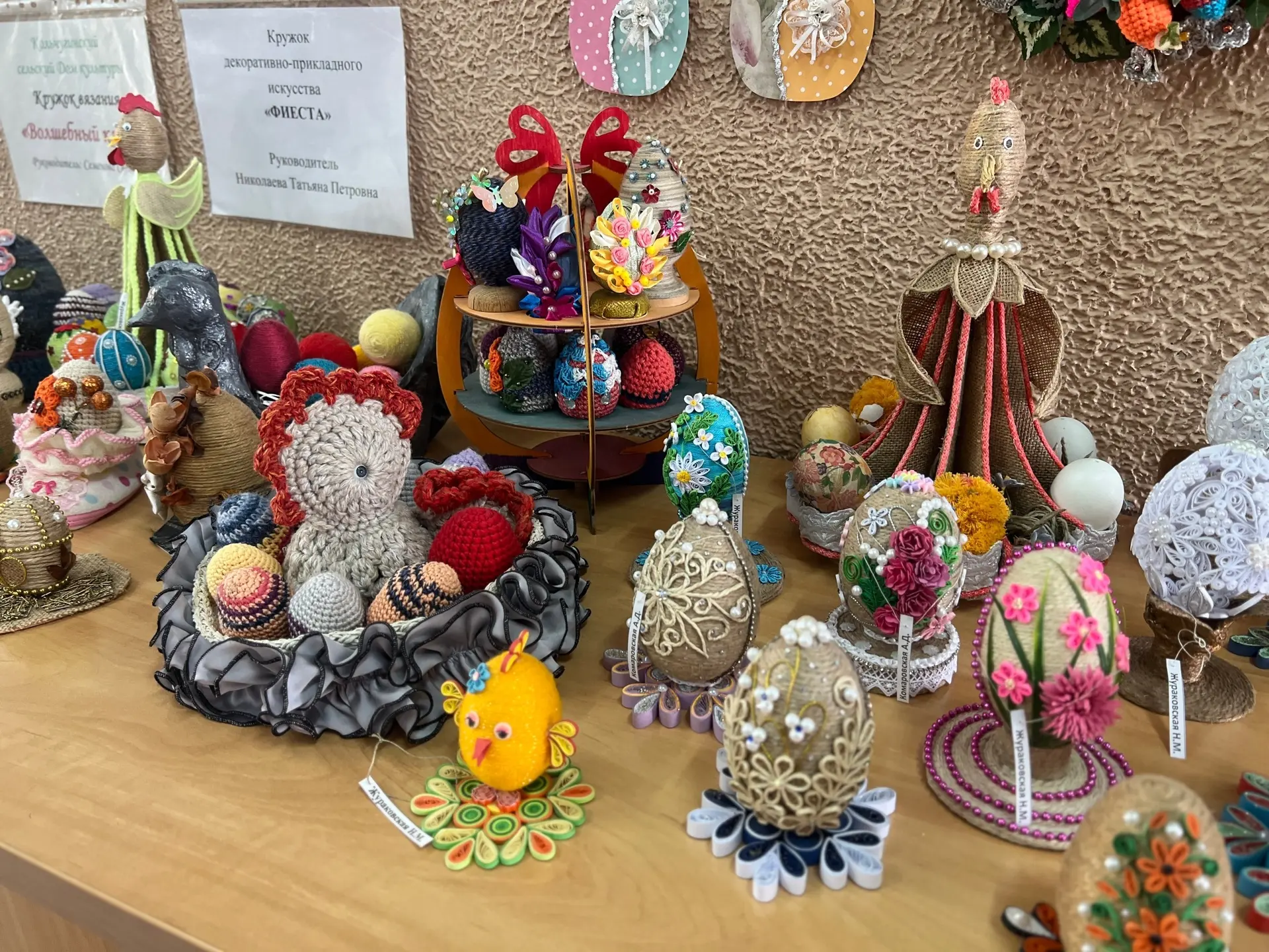 К празднику Светлой Пасхи в Новосёловском сельском Доме культуры оформлена выставка работ участников кружка декоративно-прикладного искусства «Умелые ручки» и «Малышок» (руководитель Захарова И.П.).