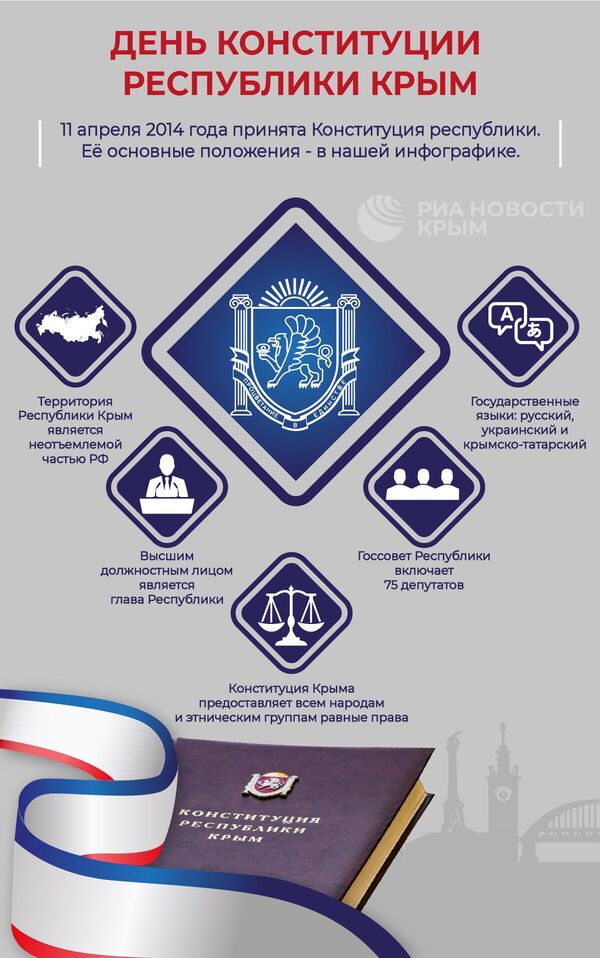 СИМФЕРОПОЛЬ, 11 апр – РИА Новости Крым. 11 апреля исполняется 12 лет со дня принятия Конституции Республики Крым. Документ гарантировал региону реальный статус, полномочия и учет интересов региона федеральной властью.