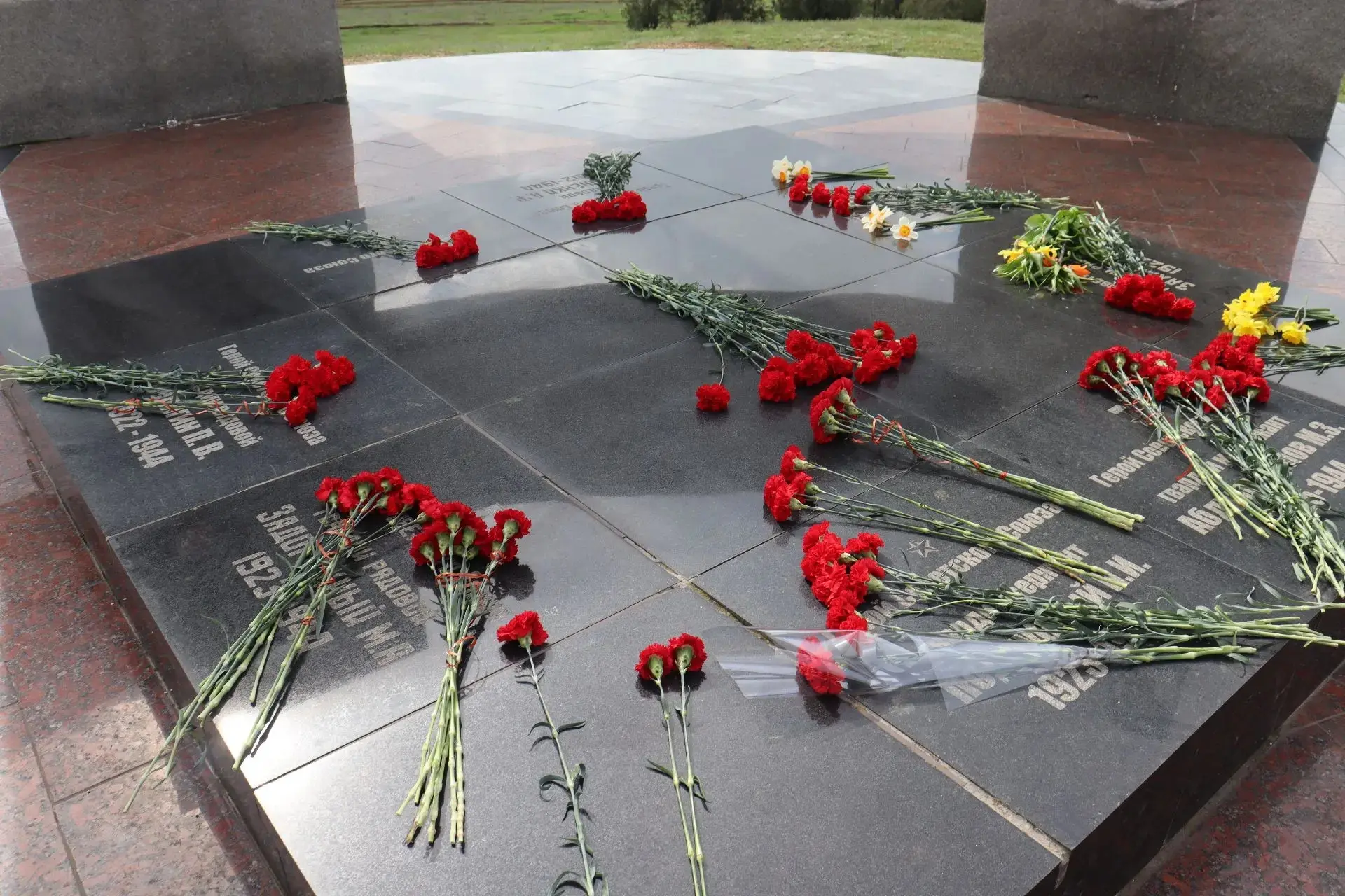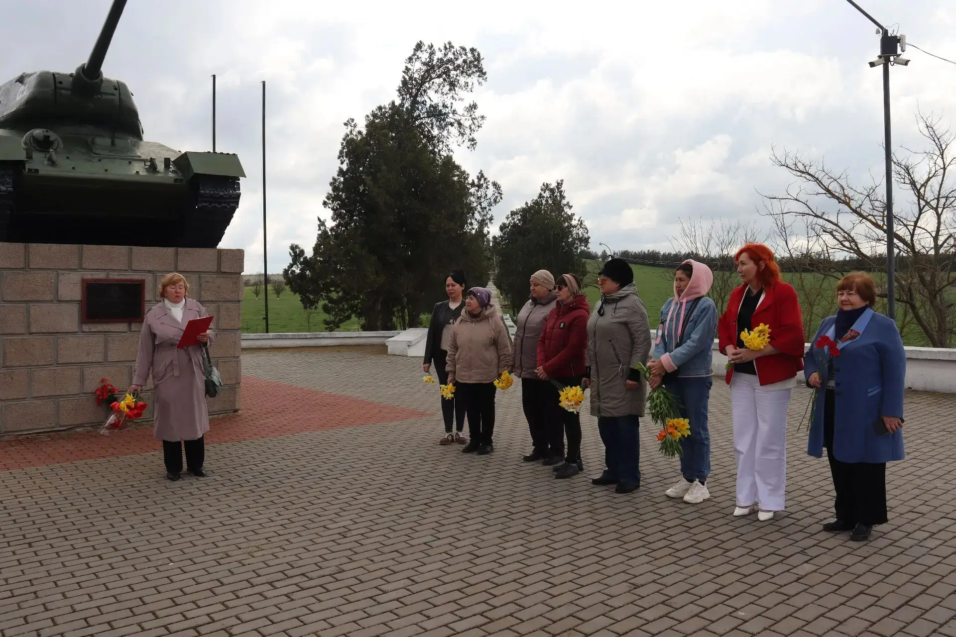 По сложившейся доброй традиции у Мемориального комплекса 9 - ти Героев Советского Союза в селе Геройское после минуты молчания возложили корзину и цветы к мемориалу “Танк Т-34”.