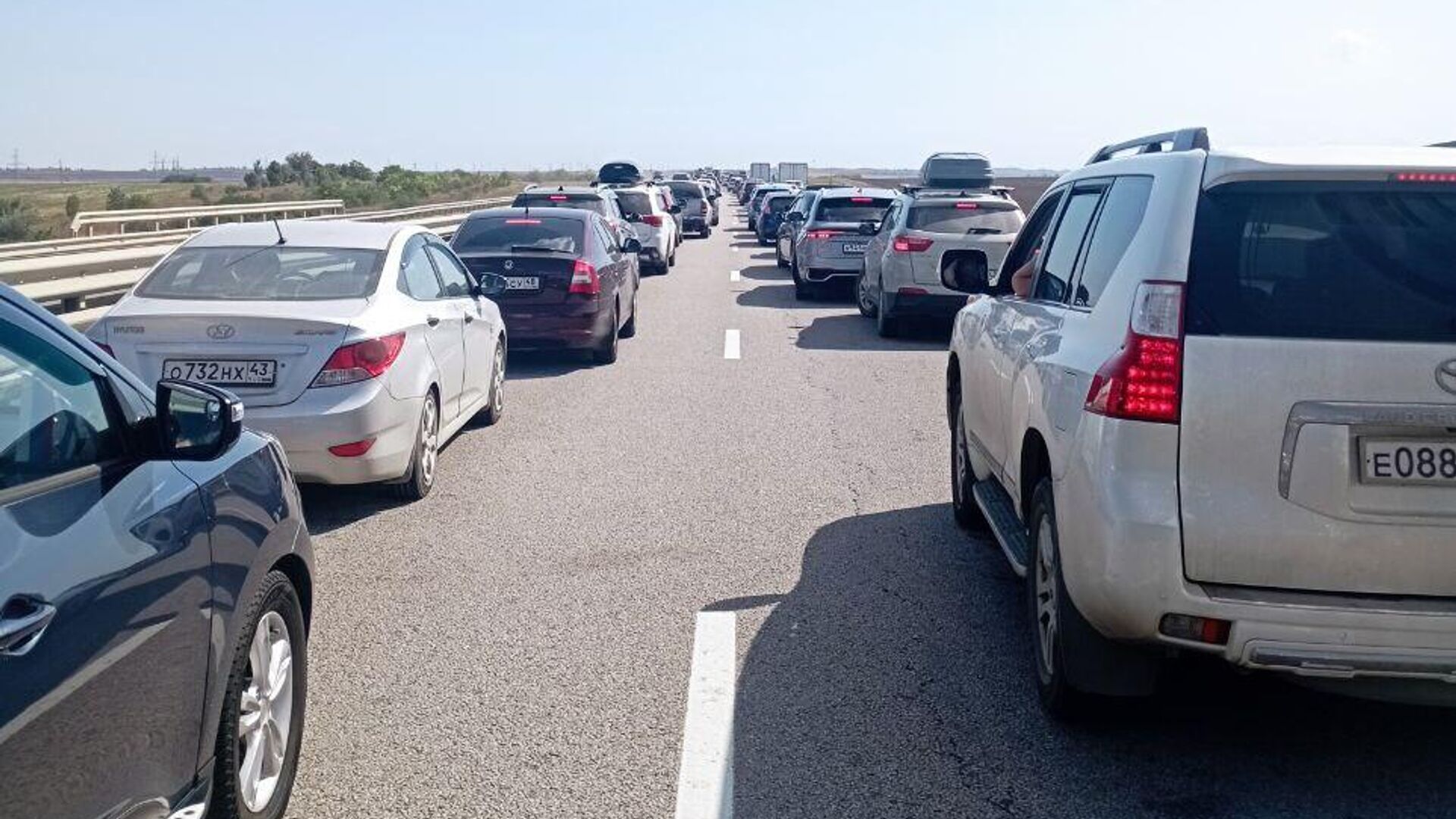 СИМФЕРОПОЛЬ, 17 апр – РИА Новости Крым. За час очередь на Крымском мосту со стороны Керчи выросла в три раза. Об этом сообщает канал оперативной информации о ситуации на транспортном переходе.