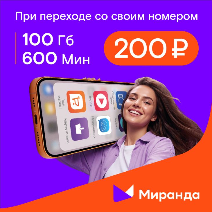 ГК «Миранда-медиа», оператор цифровых услуг федерального уровня (далее – «Миранда»), запускает специальное предложение для новых абонентов при переходе со своим номером.