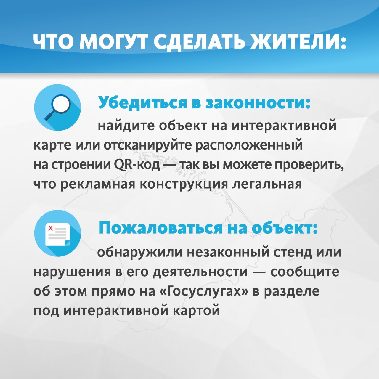 Кроме того, благодаря новым цифровым сервисам жители могут убедиться в законности: найдите объект на интерактивной карте или отсканируйте расположенный на строении QR-код. Оставить жалобу на нелегальный стенд можно в разделе под интерактивной картой.