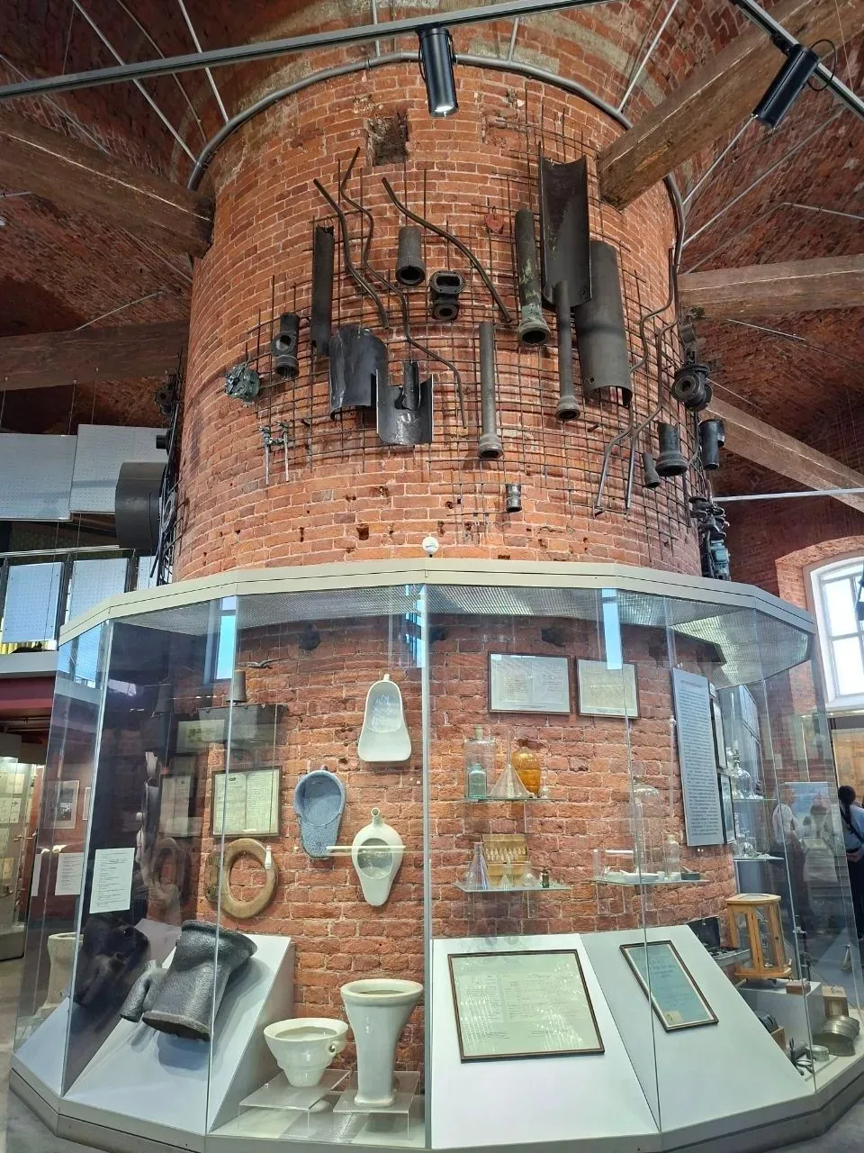 Отдельная экспозиция рассказывает о системе водоотведения, ведь централизованная канализация в Питере появилась только в XX веке. До этого нечистоты просто сливались в водоемы, что часто приводило к эпидемиям. В музее можно увидеть старые колодцы и первые деревянные трубы.