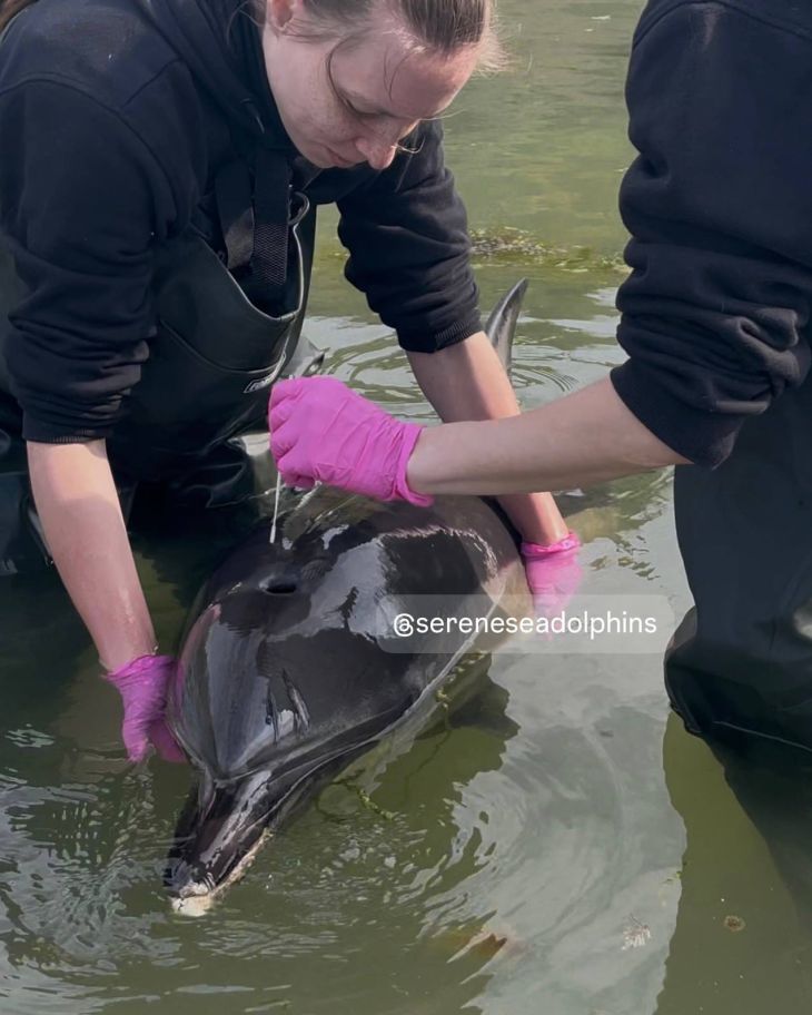 «По результатам первичных исследований и ультразвуковой диагностики у дельфина отмечалось небольшое обезвоживание и признаки энтерита, вероятно, вирусной этиологии. Оказание помощи продолжается», - добавили там.