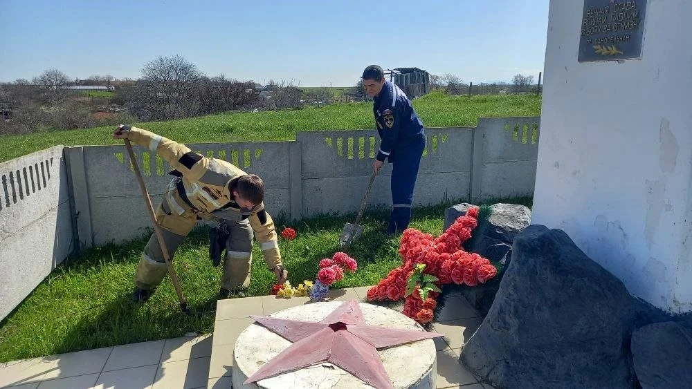Сотрудники Пожарной охраны РК приводят в порядок памятные места Великой Отечественной войны