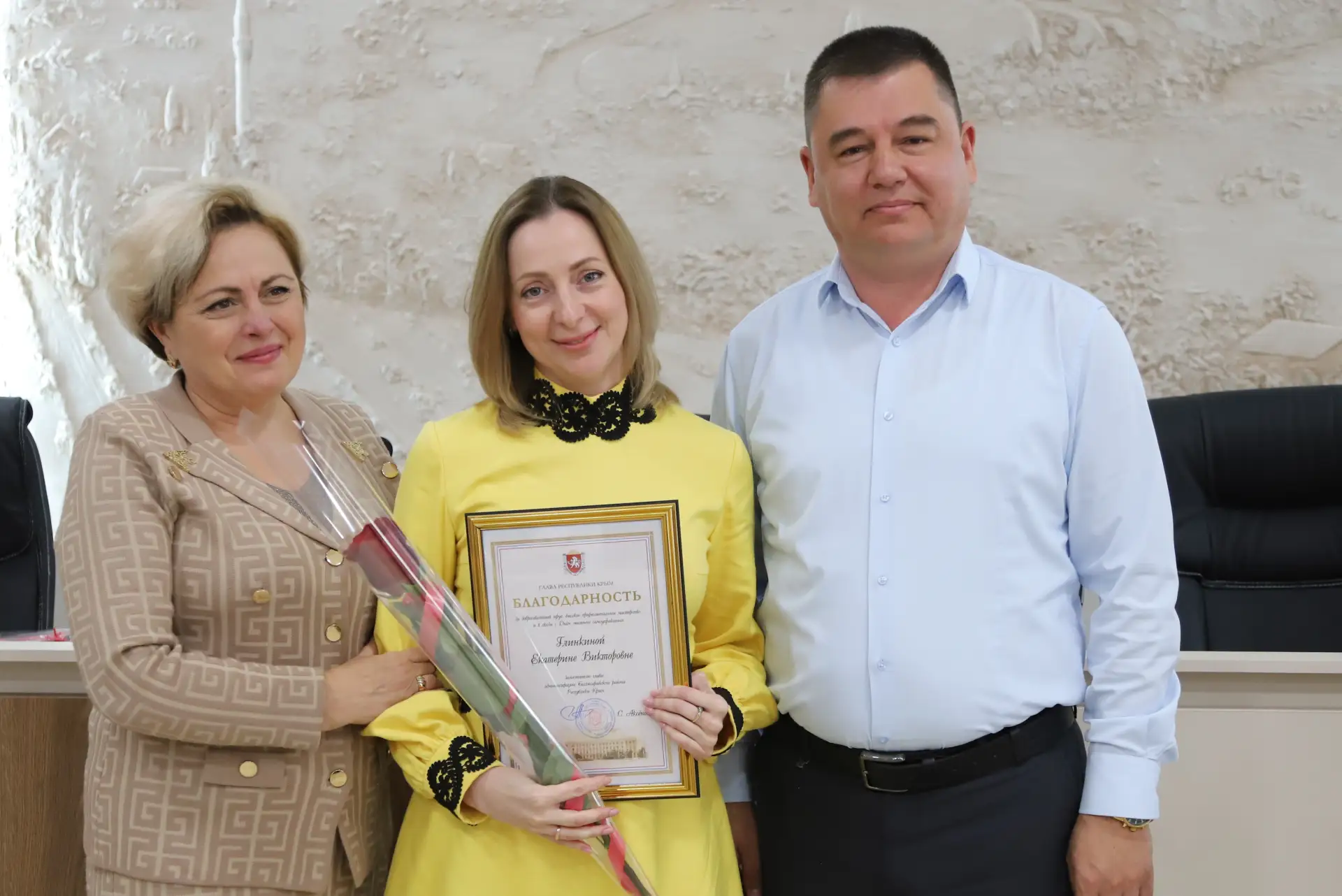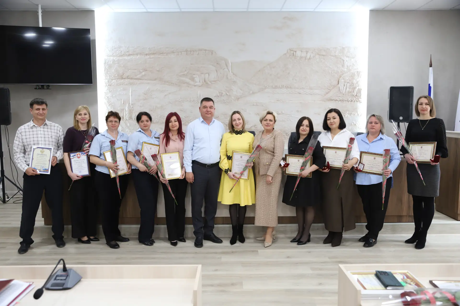 Руководители района выразили признательность муниципальным служащим за добросовестный труд, высокий профессионализм и личный вклад в развитие территории. Особой наградой отметили первого заместителя главы администрации Энвера Аблаева – ему вручён отличительный знак Главы Республики Крым «Часы от Главы Республики Крым». Почётными грамотами и благодарностями также отмечены сотрудники администрации, работники подведомственных учреждений и депутаты района.