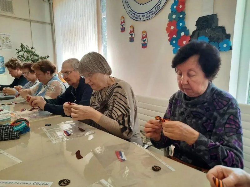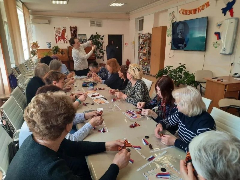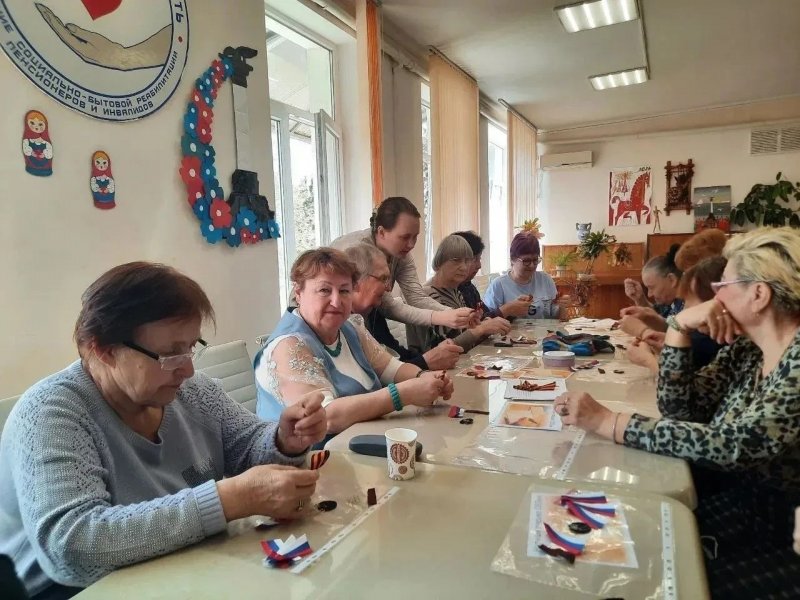 В преддверии Дня Победы для получателей соцуслуг в Севастопольском комплексном центре соцобслуживания прошел мастер-класс «Символ памяти». Подопечные создали брошь из Георгиевской ленты, украшенную цветочной композицией. Мероприятие прошло в рамках нацпроекта «Семья».