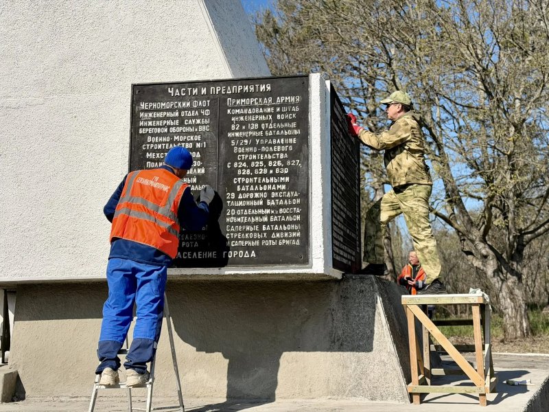 «По поручению губернатора Михаила Развожаева мы продолжаем работу по благоустройству памятных мест Севастополя в преддверии Дня Великой Победы. Примечательно, что этот памятный знак мы благоустраиваем уже второй год подряд. В прошлом году силами наших дорожников мы не только убрали территорию вокруг монумента, покосили траву, обновили краску, но и обустроили тротуар и отремонтировали лестницу к памятнику», — рассказал директор департамента транспорта и развития дорожно-транспортной инфраструктуры Станислав Таматаев.