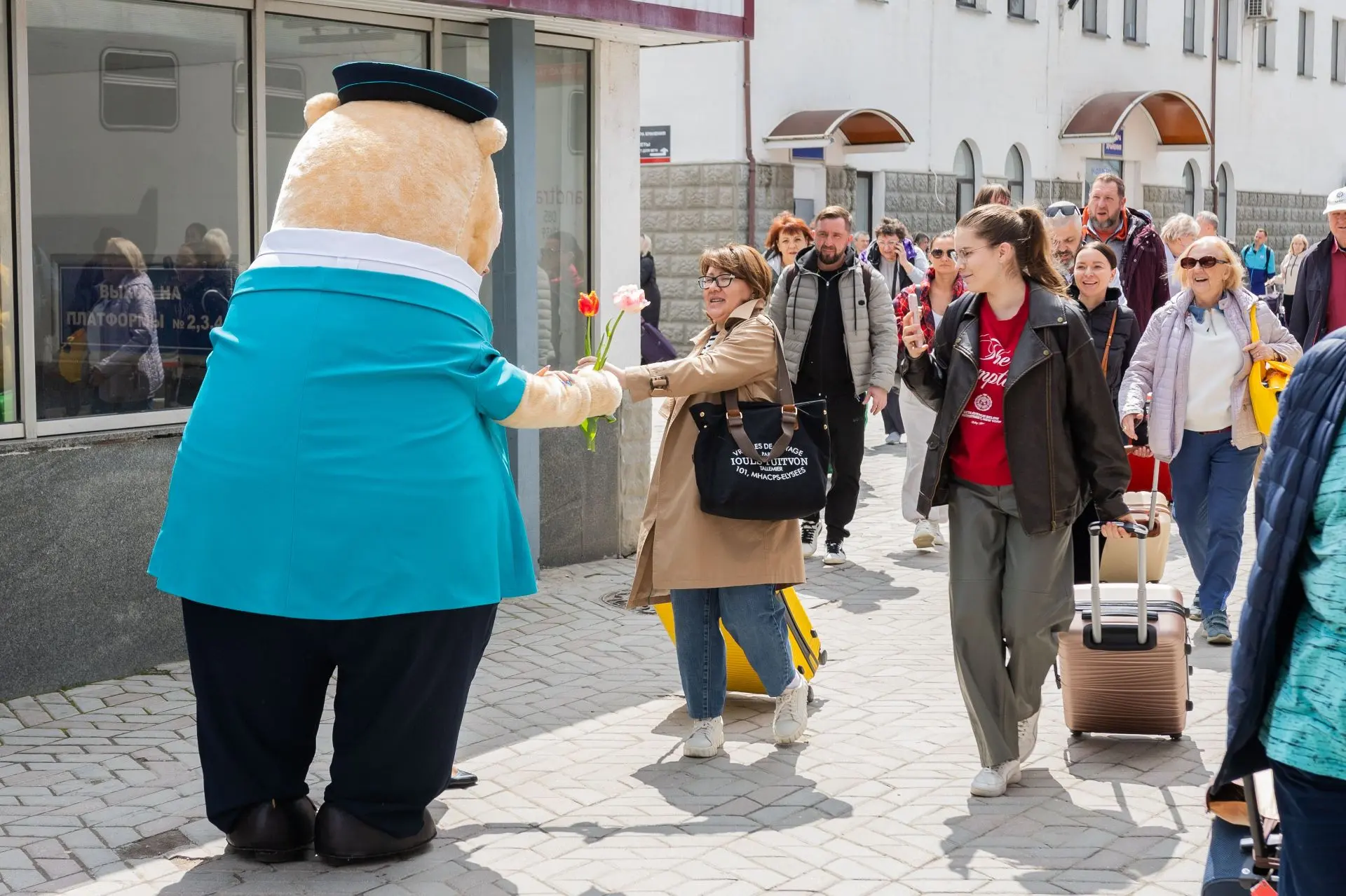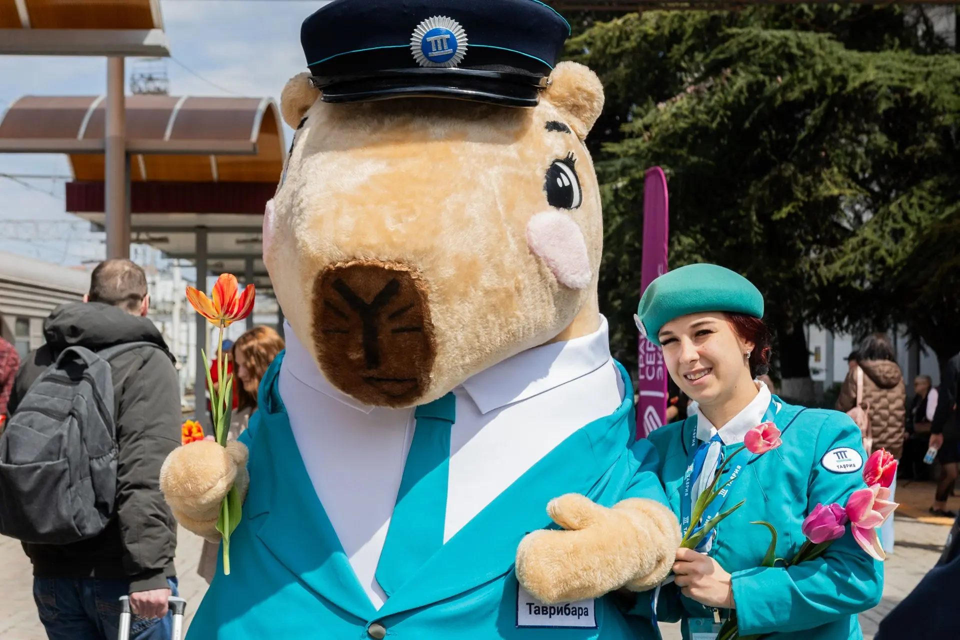 Пассажиркам поездов, прибывшим в Симферополь, подарили 300 тюльпанов