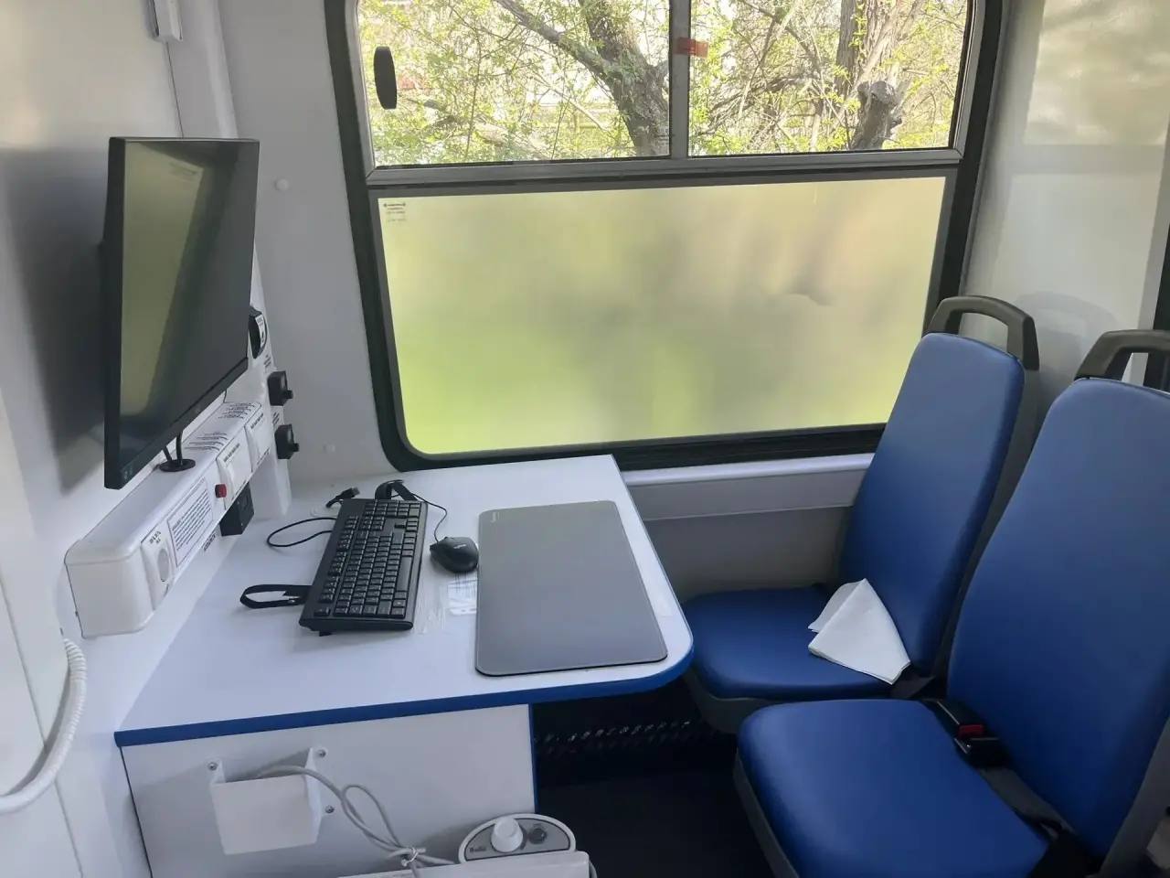 «В новом комплексе на базе транспортного средства ПАЗ 4234 размещены современные цифровые флюорографический и маммографический кабинеты. График работы мобильного комплекса предполагает регулярные выезды в сельские населенные пункты городского округа Феодосия, а также на предприятия региона для выездной диспансеризации населения», — сообщили в Минздраве РК и поделились фото оборудования.