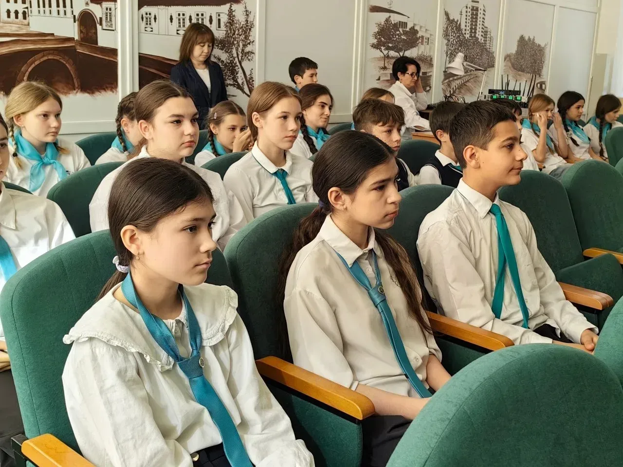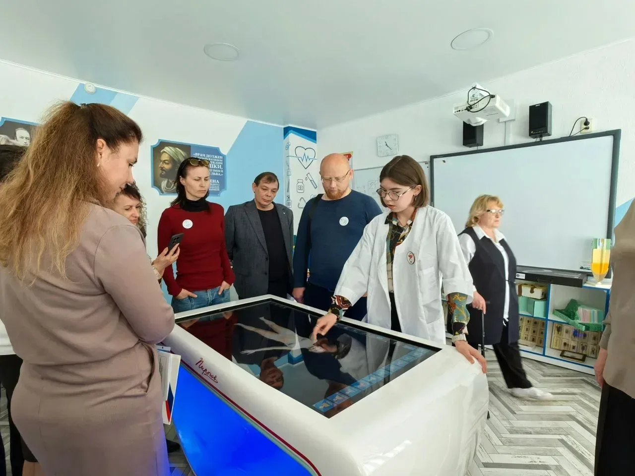 Тема: «Школа — мастерская, где формируется мысль подрастающего поколения». Гостям показали учебные кабинеты, образовательное пространство и атмосферу, в которой учатся дети.