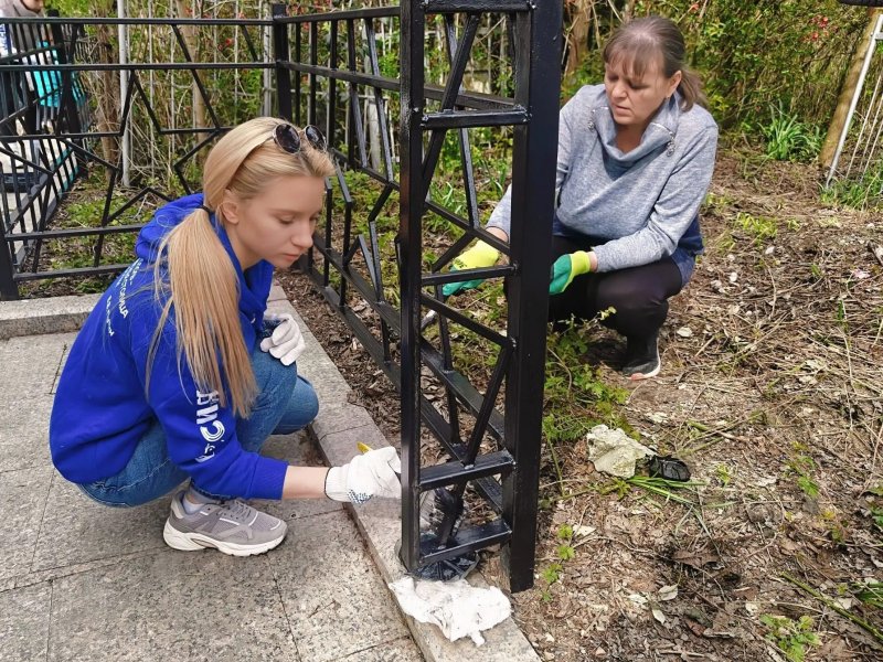 На каждом из памятников сотрудники департамента очистили прилегающую территорию от мусора, сухой травы и сорной растительности, привели в порядок надгробные плиты и мемориальные знаки, подмели дорожки.