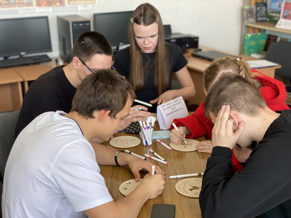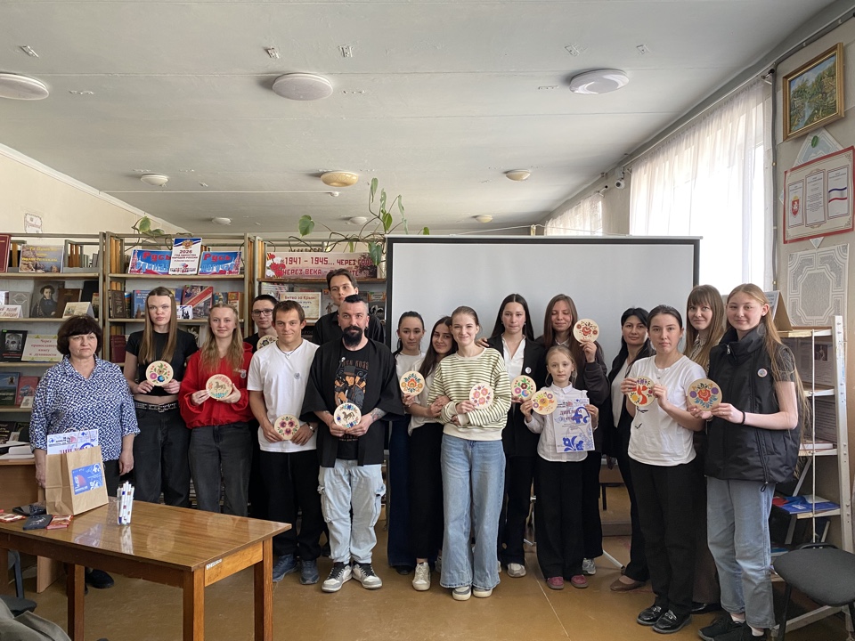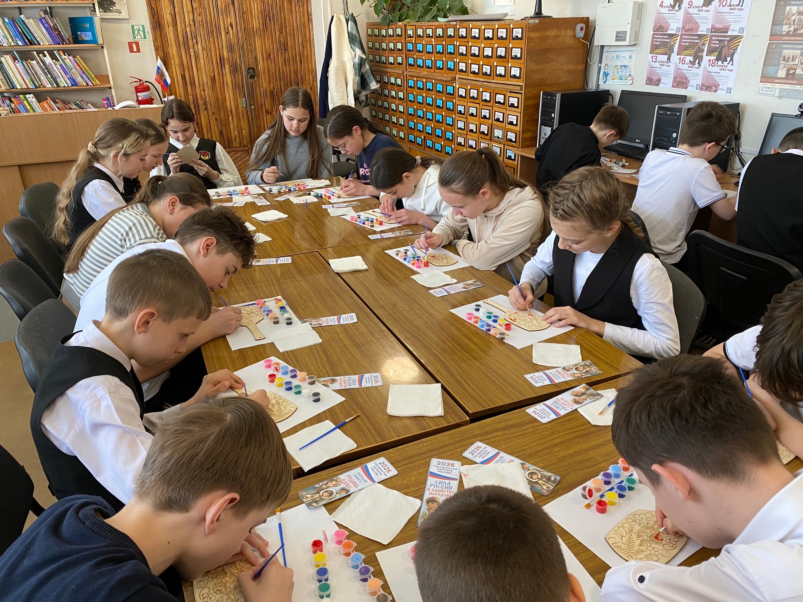 Районная детская библиотека им. А. П. Гайдара организовала для учащихся 5?го класса МБОУ «Гимназия №?1 им. К. И. Щёлкина» города Белогорска акцию «Библиосумерки?2026». Ребята узнали о традициях народов России, сыграли в патриотическую игру «Родная Россия: в гостях у народов» и расписали подставки русскими узорами. Участники получили закладки для книг с девизом мероприятия.