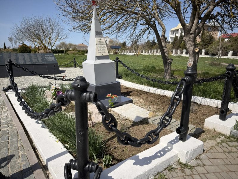 «Могила рядового Т.А. Романова, погибшего при освобождении Севастополя в 1944 году». Захоронение требует постоянного внимания: необходимо следить за порядком на прилегающей территории и поддерживать внешний вид надгробия.