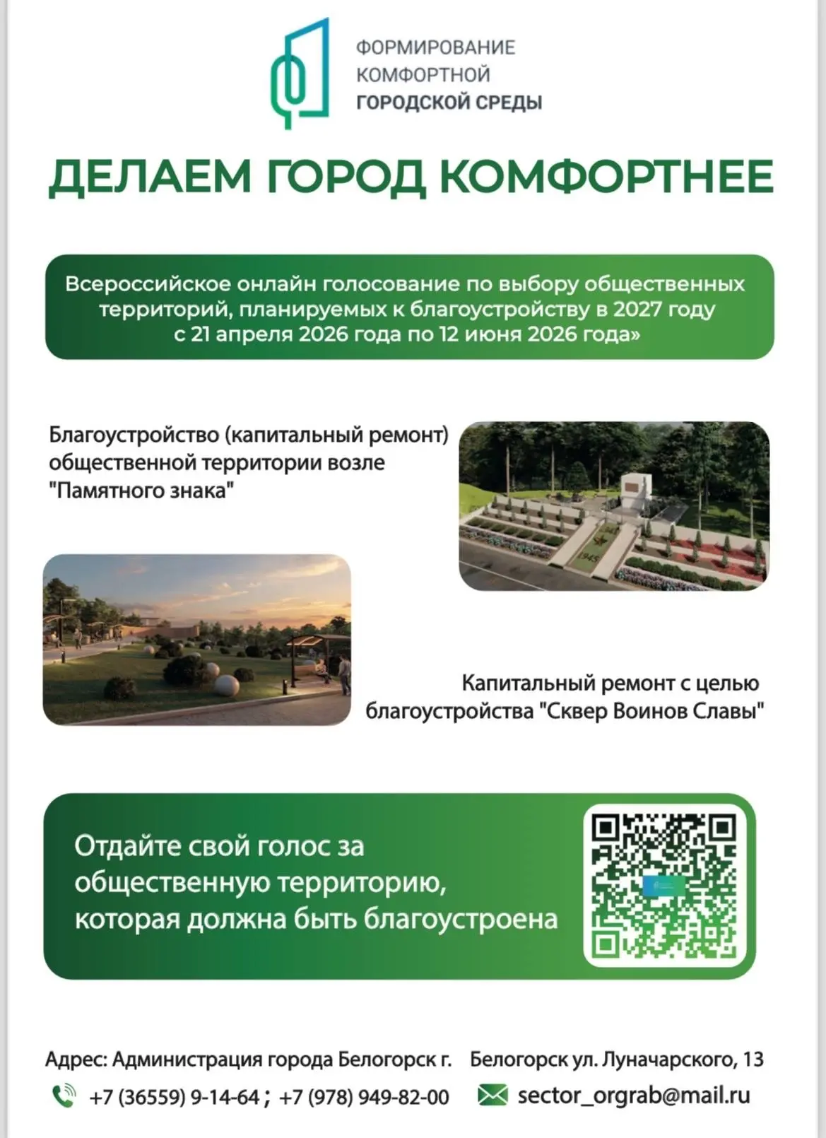 Путем голосования определится, какой объект будет благоустроен в 2027 году на территории Белогорска!