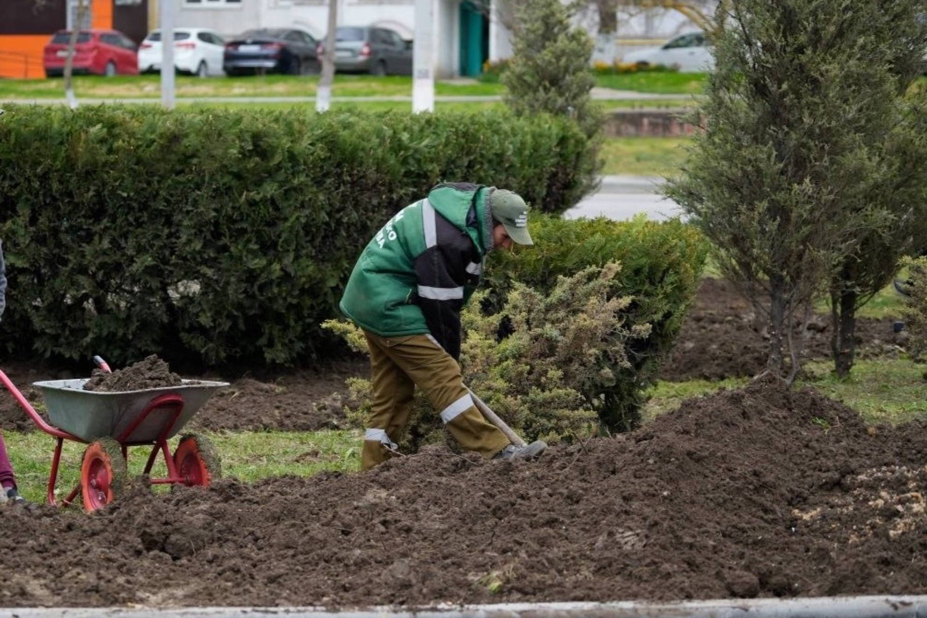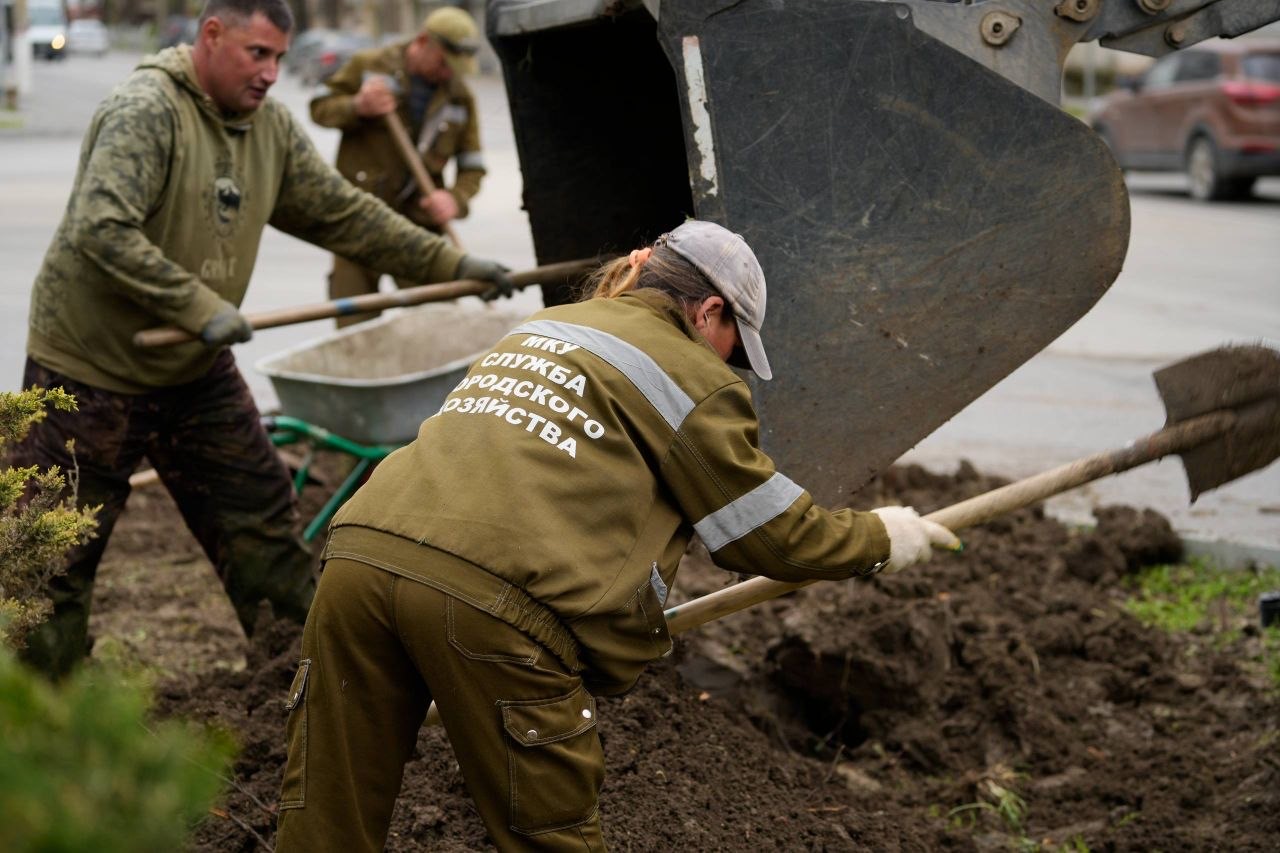 Следующим этапом станет посев газонной травы, которая озеленит пространство между хвойными деревьями и украсит это место. Ранее здесь была смонтирована современная система автоматического полива. После завершения пусконаладочных работ она будет функционировать в полную силу, обеспечивая необходимый уход за зелеными насаждениями.