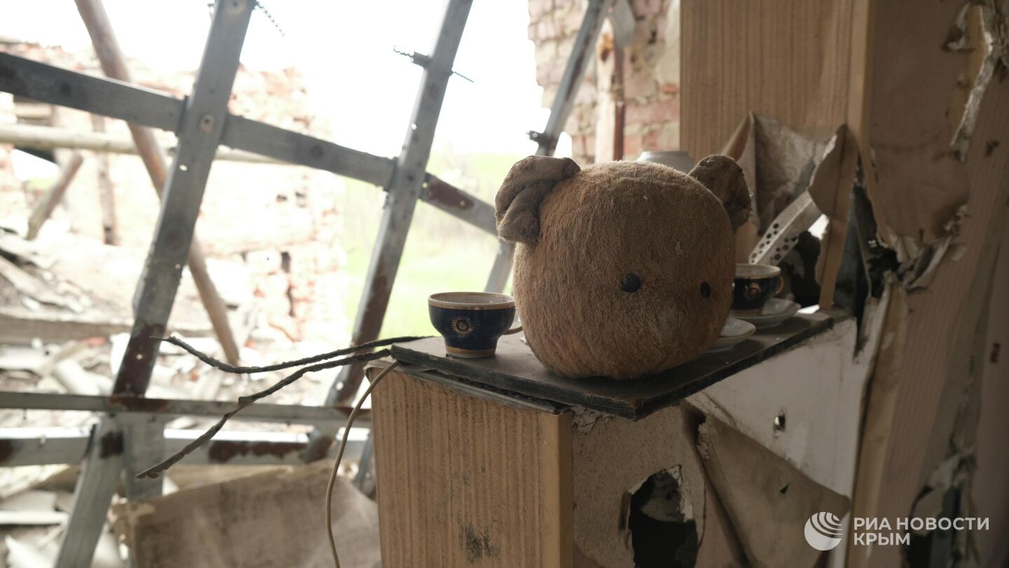 С утра осматриваем поселок. Небо относительно "чистое", обстановка спокойная. Вокруг – ни одного целого дома. В квартирах битая бытовая техника, мебель, пыльные столовые сервизы, детские игрушки, книги. Здесь время будто остановилось.