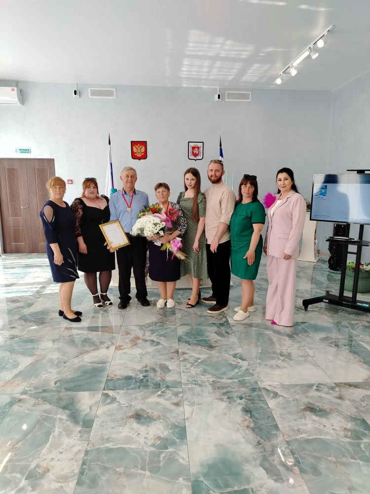 Сотрудники отдела ЗАГС тепло поздравили юбиляров, вручив им цветы, памятные медали и адрес в фоторамке. Они подчеркнули, что построить и, главное, сохранить такую крепкую семью, где до сих пор царят любовь и нежность, – это огромный труд двоих. Такие пары служат примером для подражания, и у них можно учиться мудрости и искусству семейной жизни.