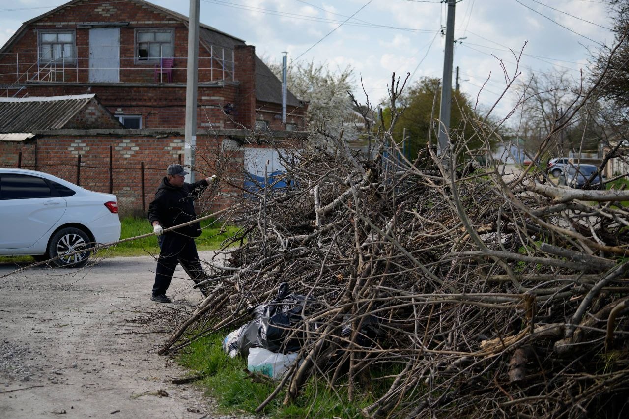 Сегодня одна из бригад работала в районе ул. Дальней. Собрали множество сухих веток и другого случайного мусора.