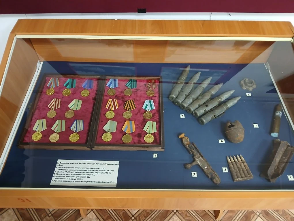 В экспозиции — подлинные предметы времён войны: снаряды, элементы экипировки, личные вещи солдат, награды, а также архивные фотографии и портреты крымскотатарских танкистов, рассказывающие об их боевом пути.