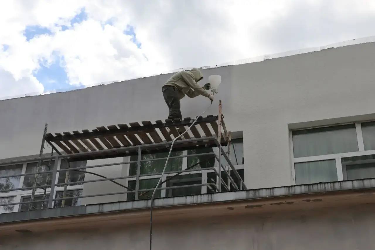В ходе капитального ремонта уже завершено утепление здания, более половины стен оштукатурено, и сейчас производится их облицовка. Сегодня ожидается поставка материалов для финальной покраски, в ближайшее время строители приступят к финишной отделке.