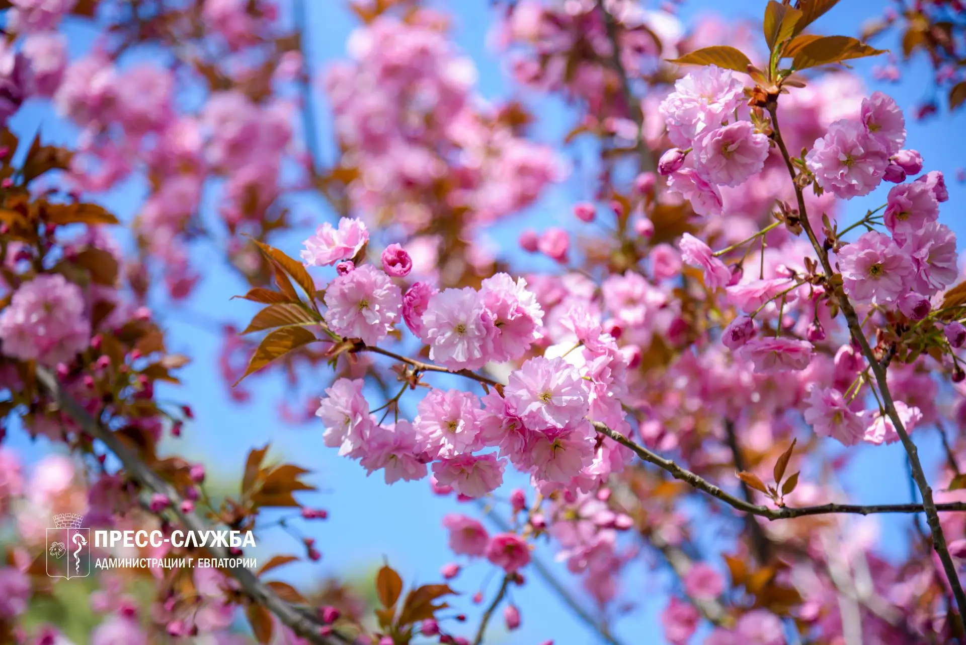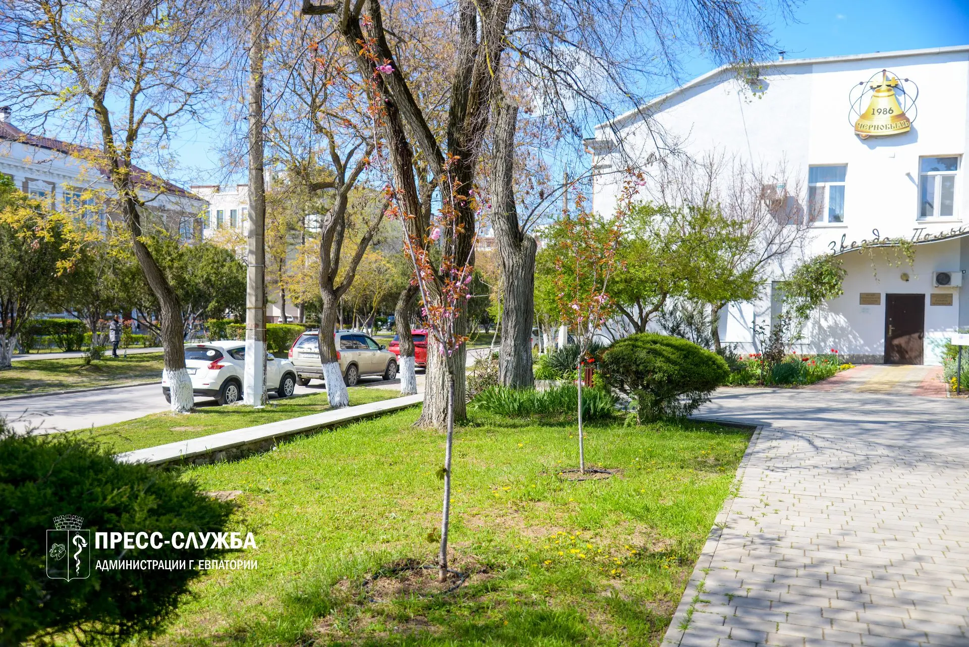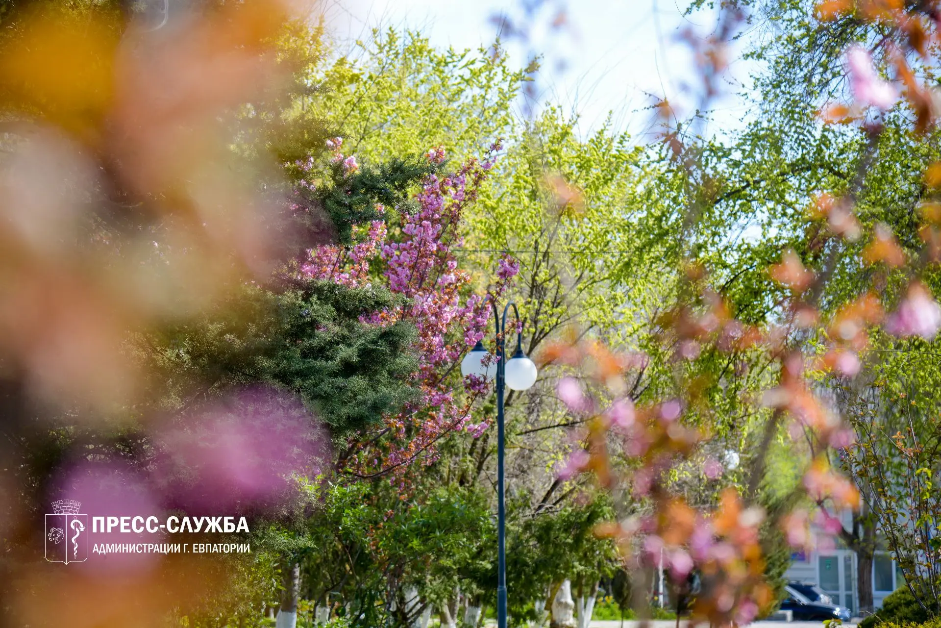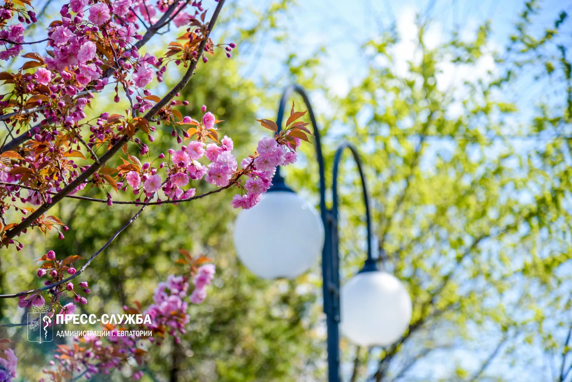 ФОТОФАКТ: В Евпатории можно полюбоваться цветением сакуры. Японская декоративная вишня распустилась в сквере Памяти героев Чернобыля.