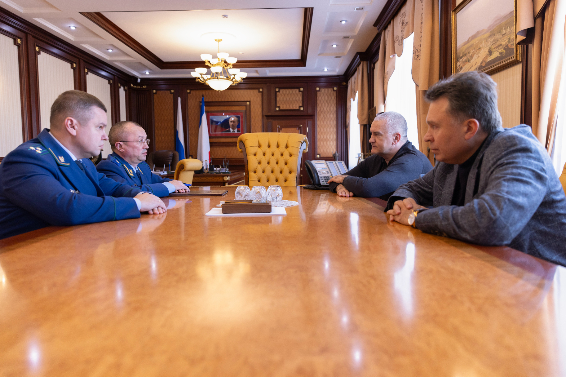 Глава Республики Крым Сергей Аксёнов провел встречу с южным транспортным прокурором Сергеем Сафиновым, который прибыл в республику с рабочим визитом.