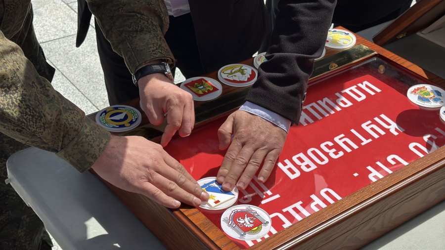 В завершение участники мероприятия прикрепили на символическую капсулу эмблему герба Севастополя, а копия Знамени Победы была передана на хранение в Музей героической обороны и освобождения Севастополя.